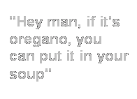 To prevent misidentification of the packaged oregano as an illegal substance, gifts are labeled with contents, along with a note addressed to 'the man', and include the Made in BC Bud dot-com website address, plus a toll-free Explanation Line. When asked what to do if someone mistakenly identifies the bagged herb as something else, Pippus quoted the classic Cheech & Chong track, Sergeant Stadakno, "Hey man, if it's oregano, you can put it in your soup".